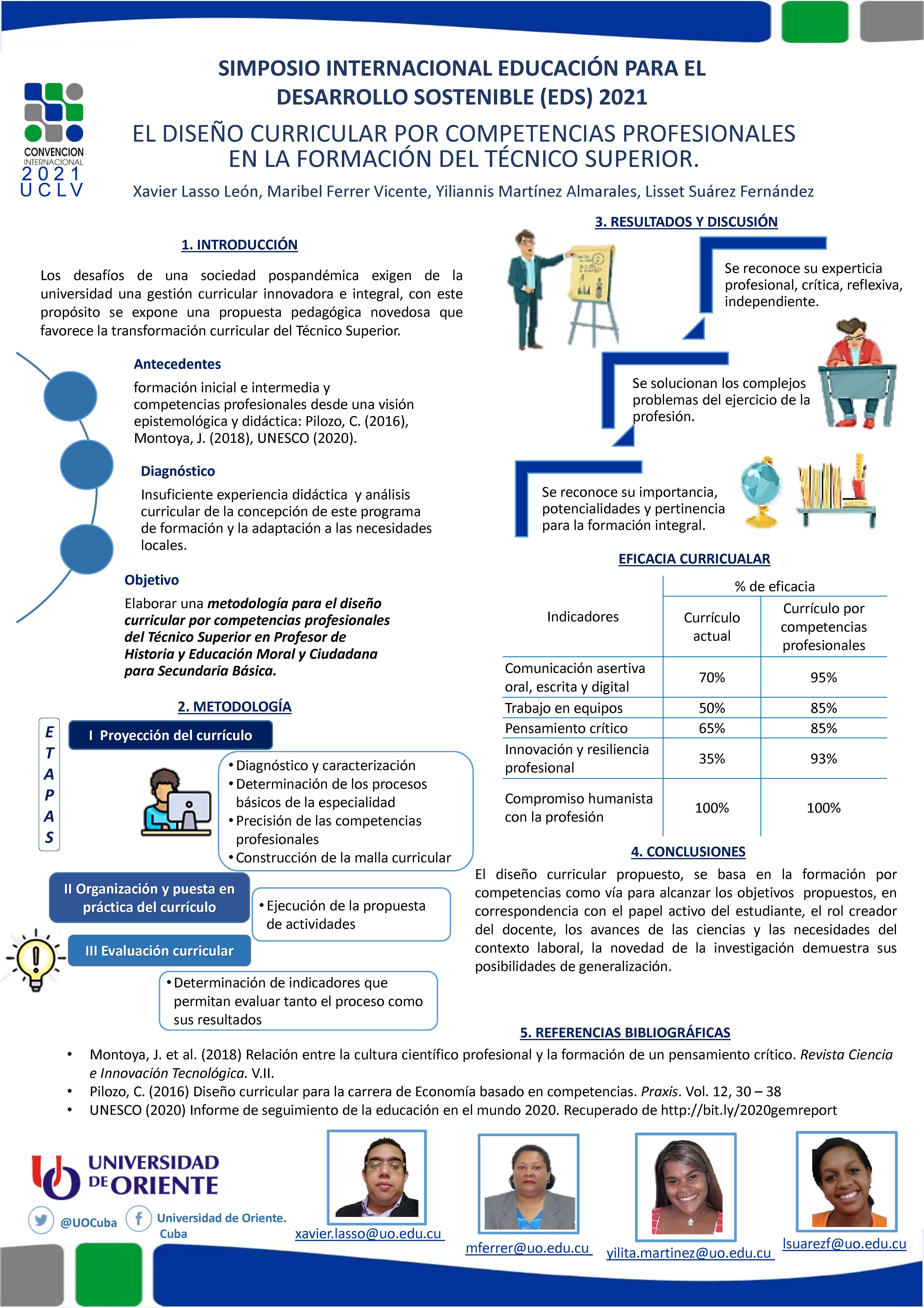 Los desafíos de una sociedad pospandémica exigen de la universidad contemporánea desarrollar como parte de su formación integral, una gestión curricular en vínculo directo con los imperativos que la sociedad, la ciencia y la innovación les imponen a sus planes de formación. Por su potencial el Técnico Superior constituye una demanda social de fuerza de trabajo calificada que logra la satisfacción de intereses estatales y personales, por lo que la adecuación de su currículo a estos requerimientos implica su adaptación a las necesidades laborales reales y a la adquisición de herramientas esenciales para la gestión de su desempeño profesional. El objetivo de esta investigación es elaborar una metodología para el diseño curricular basado en competencias profesionales del Técnico Superior, que favorece desde su concepción flexible y adaptada a las características para la cual se emprenden, la formación pertinente de profesionales en un breve período de tiempo, sustentada en un enfoque de sistema con subsistemas de planificación, ejecución y evaluación, lo que posibilitó obtener resultados favorables en la transformación curricular de las problemáticas metodológicas y didácticas detectadas en la investigación desarrollada en la Universidad de Oriente.
