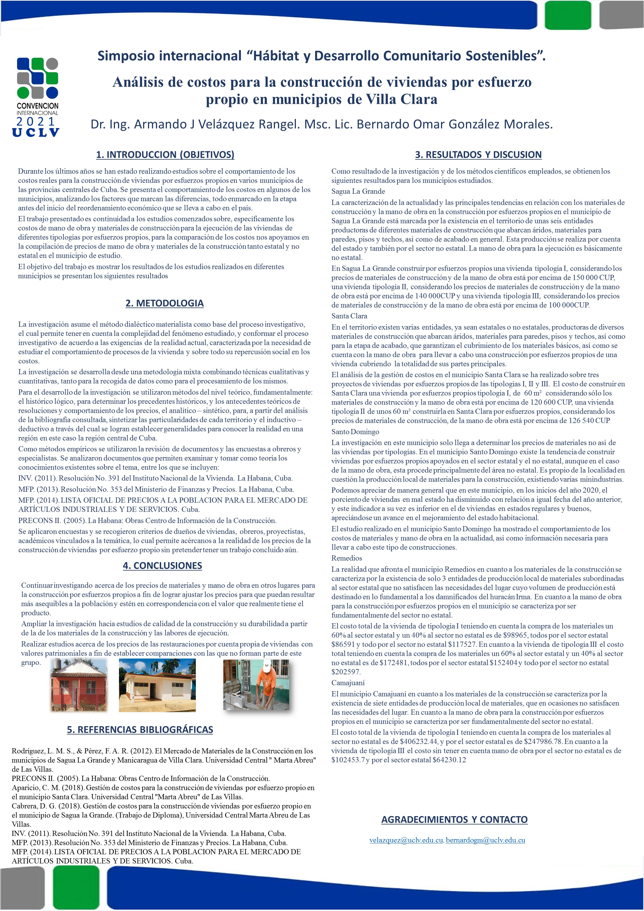 El trabajo presentado es continuidad a los estudios comenzados sobre, específicamente los costos de mano de obra y materiales de construcción para la ejecución de las viviendas de diferentes tipologías por esfuerzos propios, para la comparación de los costos nos apoyamos en la compilación de precios de mano de obra y materiales de la construcción tanto estatal y no estatal en el municipio de estudio.