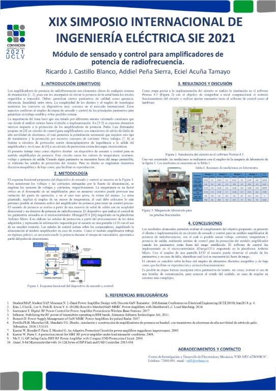 Los amplificadores de potencia de radiofrecuencia son dispositivos muy costosos, lo que hace necesario el diseño de etapas para el control de sus principales parámetros. Entre las variables más distintivas a controlar se encuentran: temperatura, voltajes de la fuente de alimentación, corriente y sobreexcitación de señal de entrada. El control oportuno de estos parámetros puede prevenir deformaciones en la señal de salida y/o roturas que obliguen al cambio de la etapa de amplificación. En el presente trabajo se expone el diseño de un dispositivo de control para un módulo amplificador de potencia que opera en régimen pulsivo. En su diseño se empleó el microcontrolador ATmega32U4 empotrado en la plataforma Arduino Micro. Este permite determinar los valores de temperatura, corriente, voltaje, potencia de salida y eficiencia; lo datos son procesados y en caso de que los parámetros estén fuera del rango permisible elabora señales de protección. Cuenta con una interfaz de usuario para visualizar los valores en tiempo real en una pantalla LCD 16x2, los cuales pueden ser accedidos a través de un encoder rotatorio que permite desplazarse por los diferentes menús de navegación en la pantalla. El algoritmo de control implementado puede ser adaptado con mínimos cambios a otros dispositivos de igual designación y al estar basado en el empleo de un microcontrolador permite ser migrado a otras plataformas.