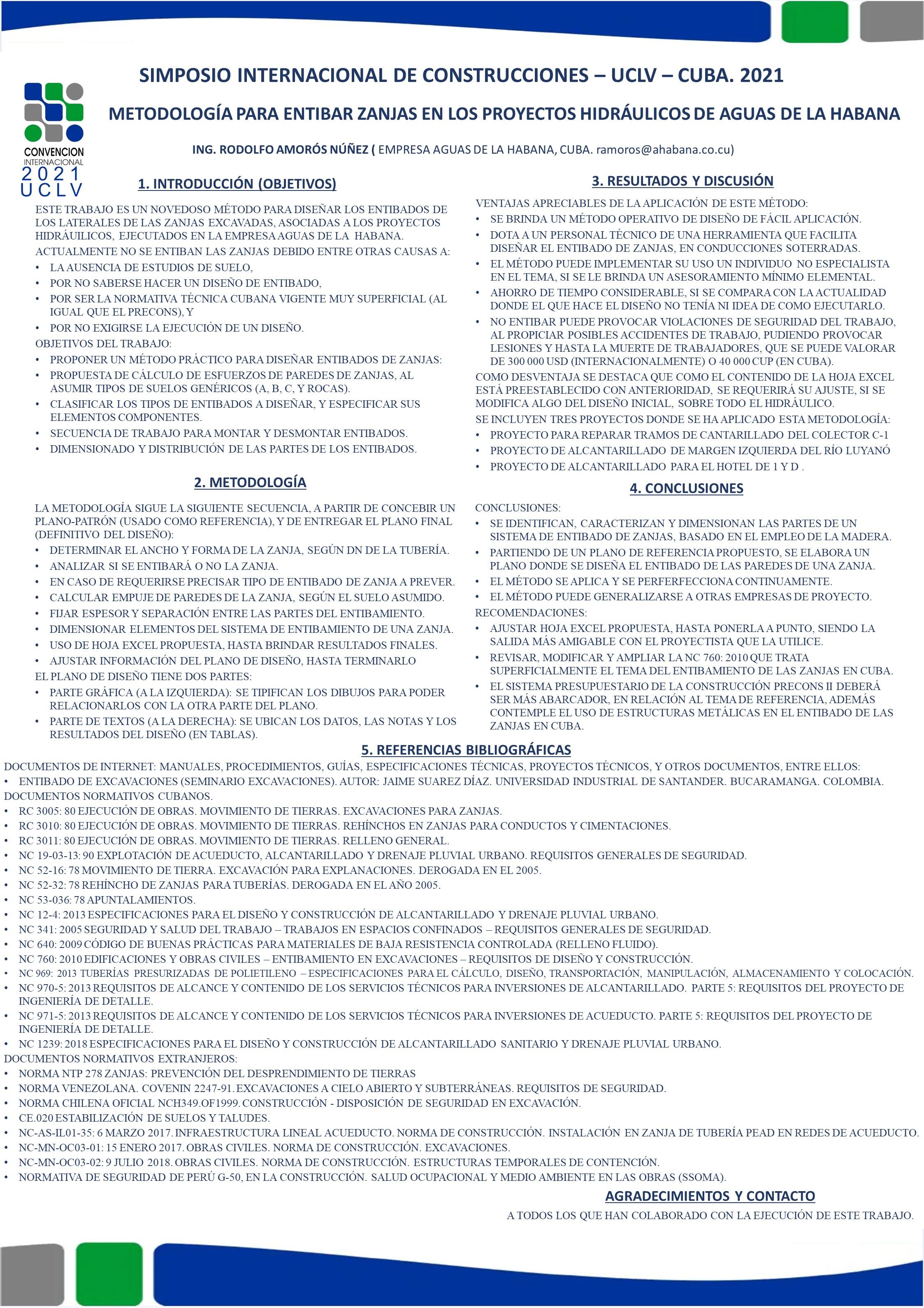The Waters of Havana Company, when designing its hydraulic works, foresees the excavation of trenches, without anchoring their walls, due to different causes, among them that the associated current Cuban standard is very superficial (NC 760: 2010).