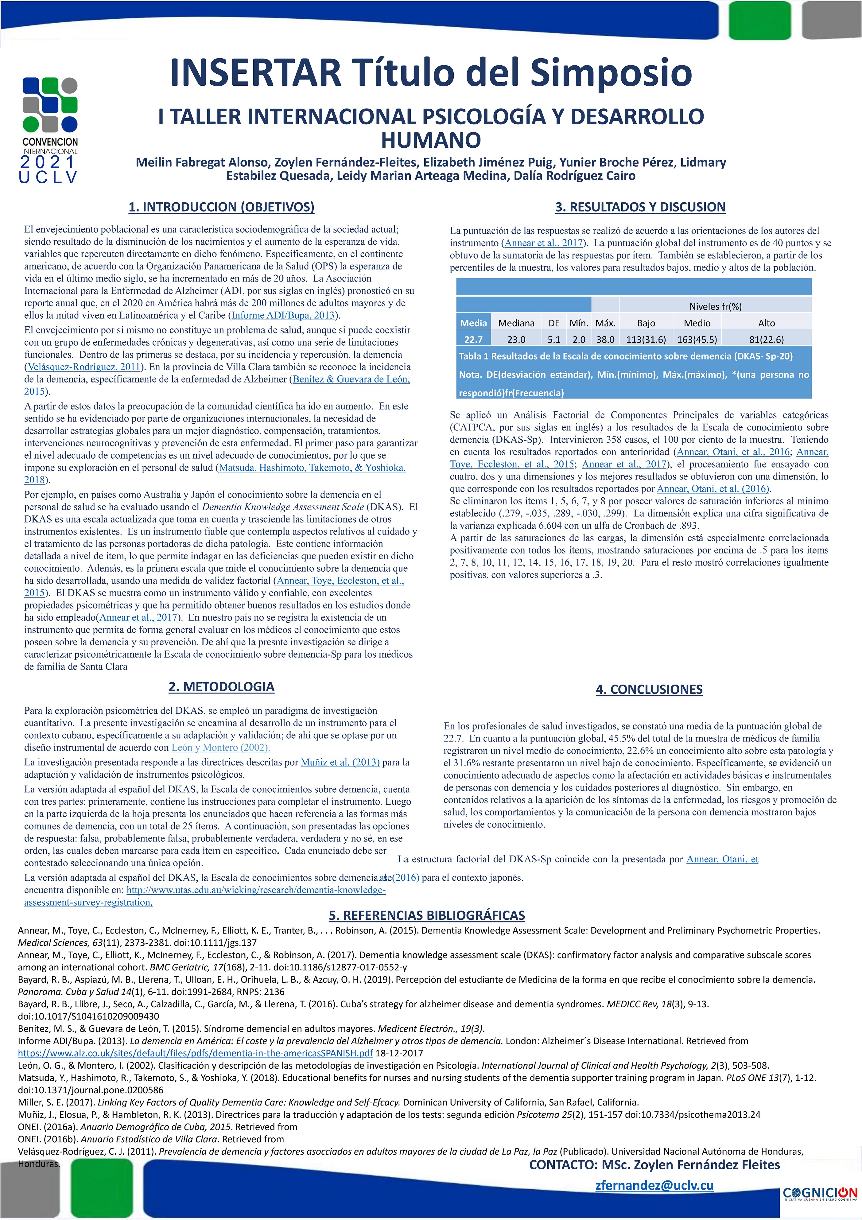 Objetivo: Caracterizar psicométricamente la Escala de conocimiento sobre demencia-Sp (DKAS-Sp) en los médicos de familia de Santa Clara.