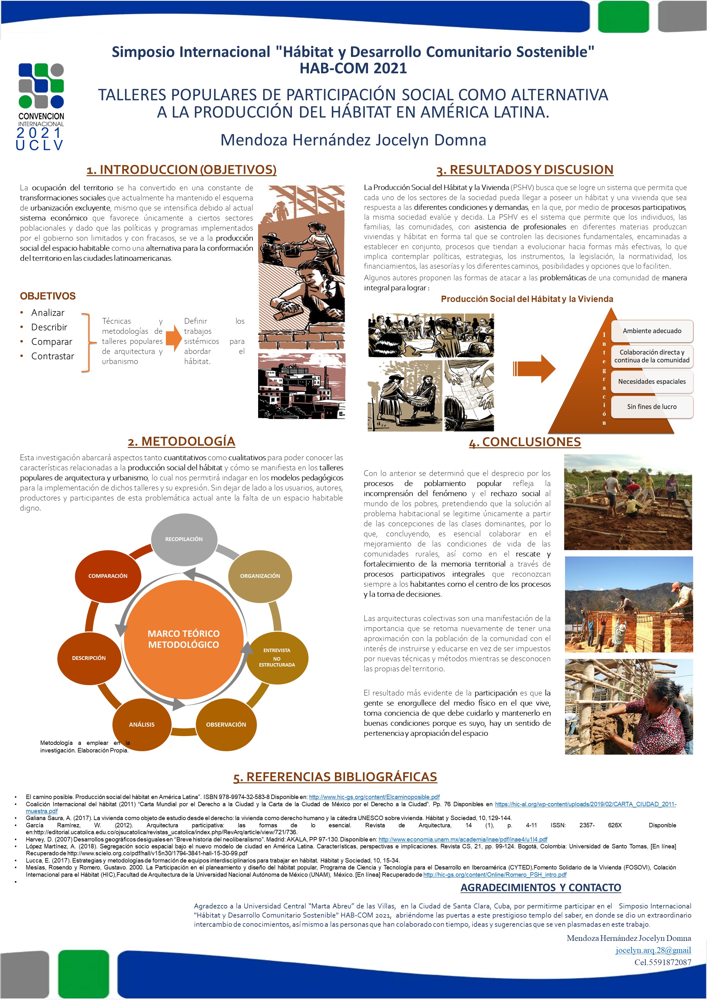 Participación en el simposio internacional “hábitat y desarrollo comunitario sostenible” con la ponencia “Talleres populares de participación social como alternativa a la producción del hábitat en América Latina” en la Universidad Central "Marta Abreu" de Las Villas, Santa Clara, Cuba.